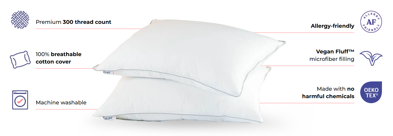 The UltraSoft Pillow is engineered to deliver the comfort of a luxury hotel bed with advanced anti-snoring support. Featuring a hypoallergenic vegan Fluff™ microfiber fill and a 300-thread-count breathable cotton shell, it molds perfectly to your head and neck for uninterrupted, silent sleep.